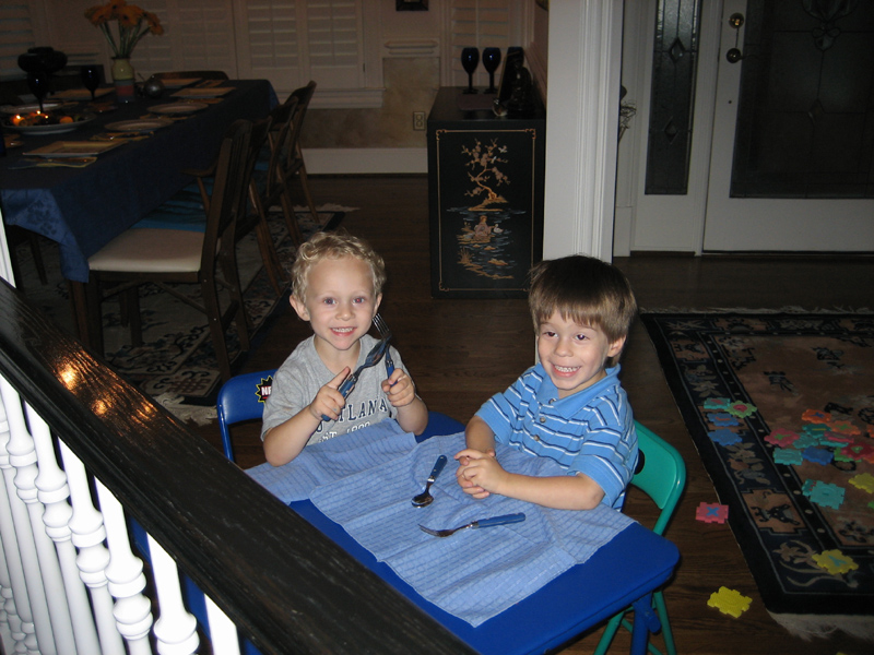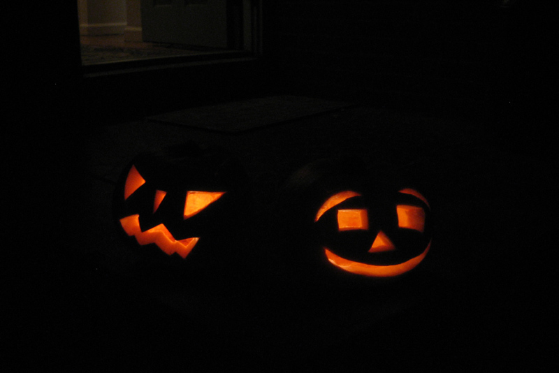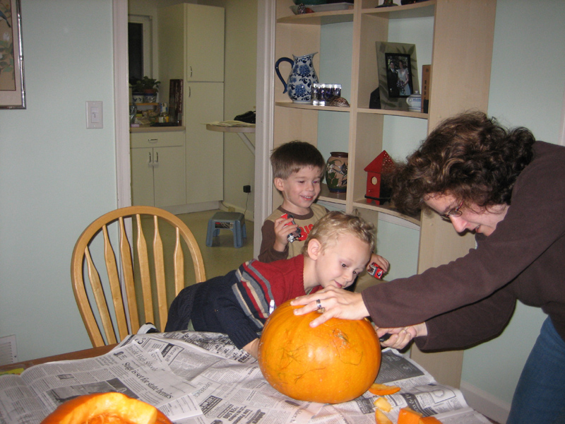 The boys supervise pumpkin carving...