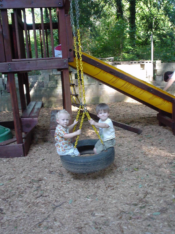 Sammy and Grant break in the tire swing, while Ben checks out slide...